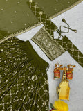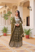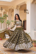 Abstract Mehendi Georgette Sequins Work Lehenga Choli For Engagement