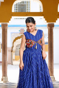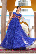 Blue Color Bandhani Printed Gown For Navratri Wear