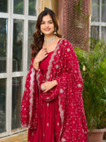 Classy Red Color Vichitra Silk Wedding Anarkali Gown With Dupatta