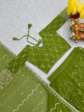 Excellent Green Georgette Trendy Lehenga Choil For Sangeet Ceremonies