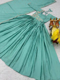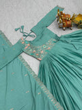 Designer Sky Blue Chinon Wedding Wear Gown for Women