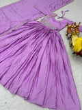Exclusive Lavender Color Chinon Designer Party Long Gown With Dupatta