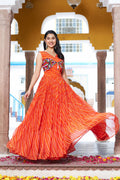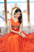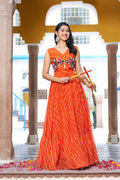 Indian Bandhani Printed Orange Navratri Mirror Work Gown