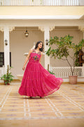 Lovely Pink Color Gamthi Work Georgette Gown for Navratri