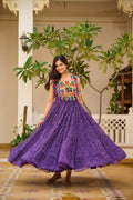 Navratri Special Purple Color Georgette Gamthi Work Gown