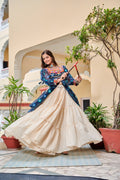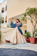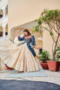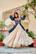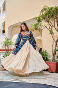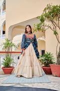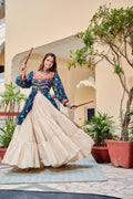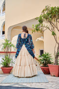 Navratri Wear Blue Cotton Stitched Lehenga With Shrug