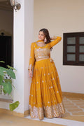 Presenting Yellow Color Georgette Designer Event Wear Lehenga Choli