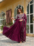 Stunning Wine Color Vichitra Silk Designer Gown For Festive Wear